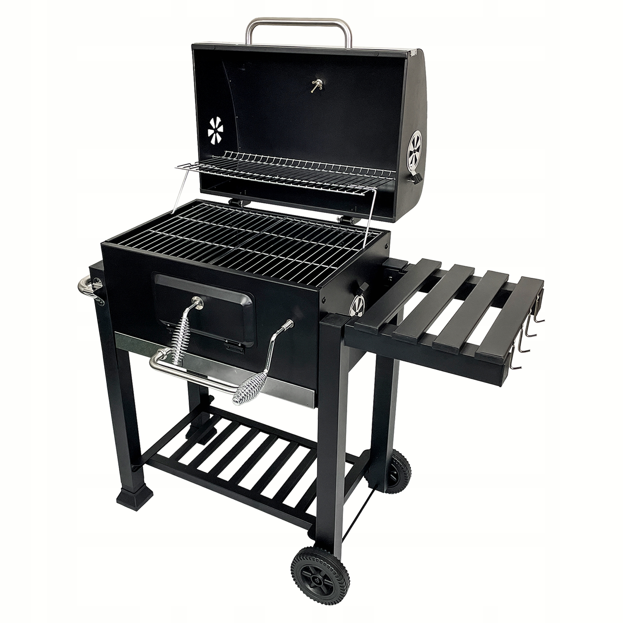 ✔️ Na obu bokach grilla są otwory wentylacyjne z regulacją przepływu powietrza.